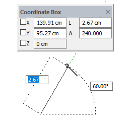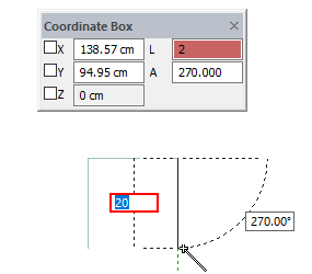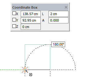In the coordinate box, type 2 cm on the L line, press Enter and draw a 2 cm line segment in the horizontal direction to the right.