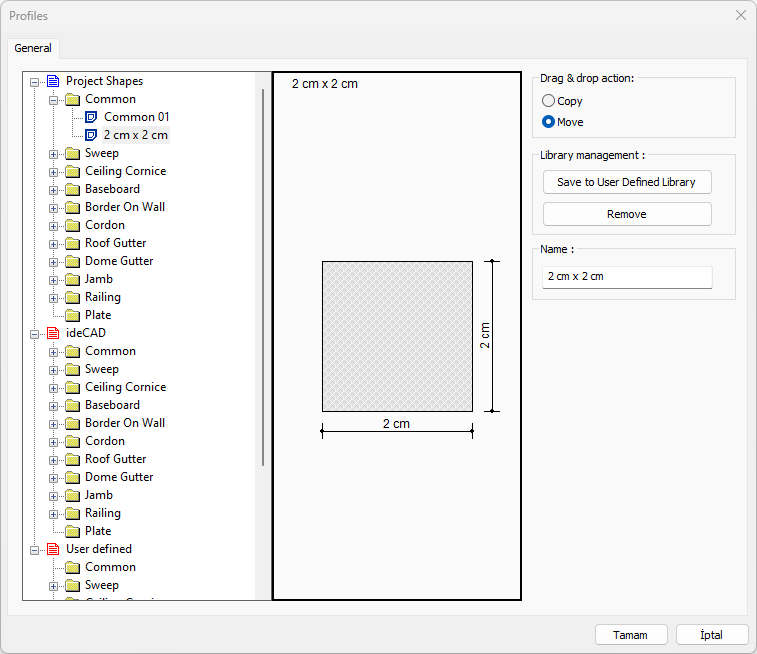 Type 2 cm x 2 cm in the profile name, click the OK button to close the profile settings dialog.