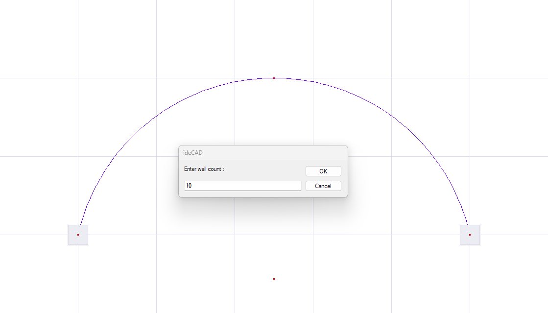 In the dialog that opens, enter the count of wall that will make up your arc. The program does not transform the arc or circle into one piece wall. Places the count of wall pieces you will give here on the circle or arc. As the count of walls increases, the wall to be formed gets closer to the circle or circle. For example; If you are transforming a circle to a pitch and you give the number of walls 6, you will get a hexagonal screen, if you give the number of walls 20, you will get a twenty-sided screen The higher the number, the higher the curvature precision.