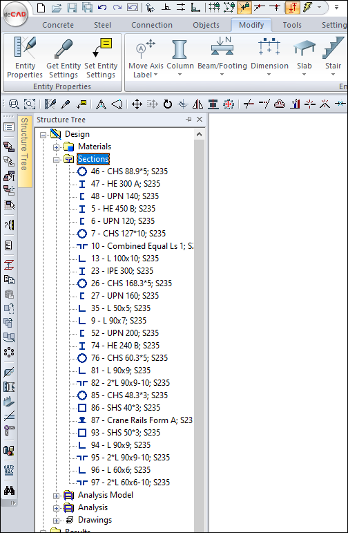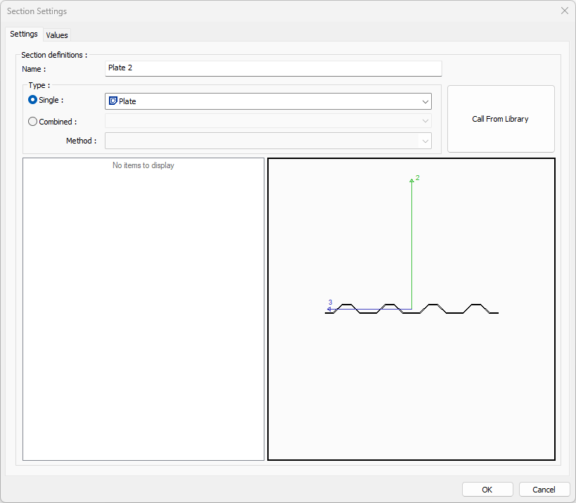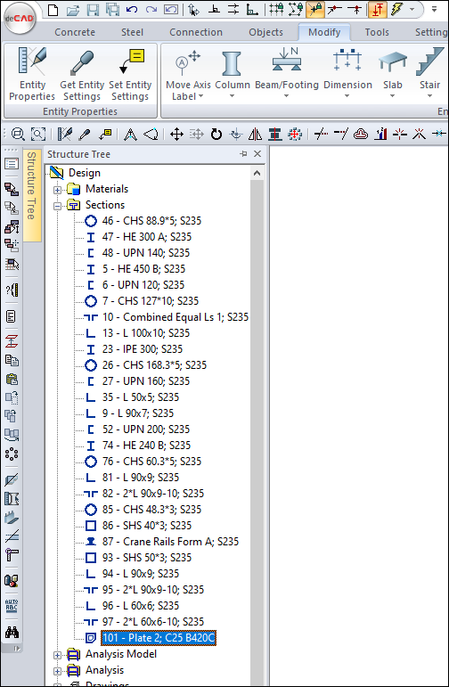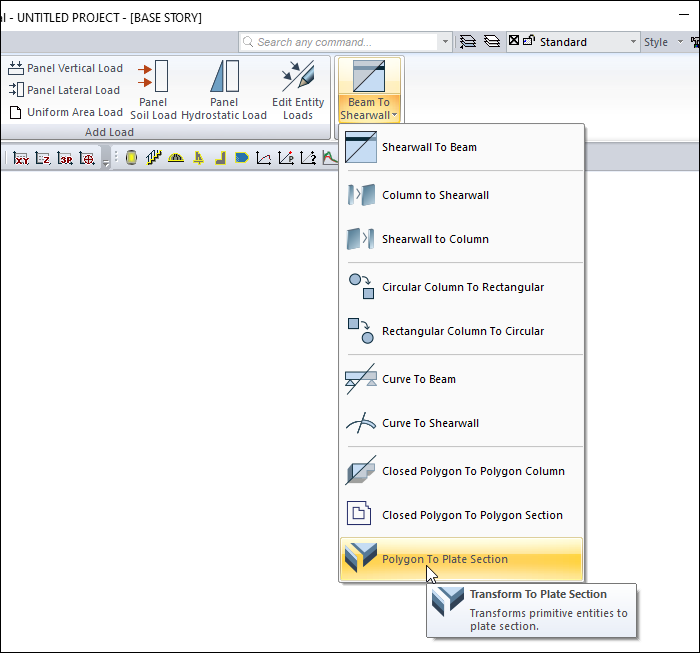 With the Polygon to Plate Section command, a closed area created by a line is converted to a plate section. With this method, plate sections are defined in the desired forms.