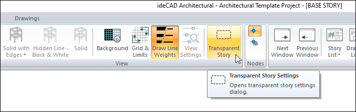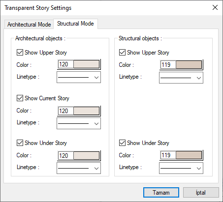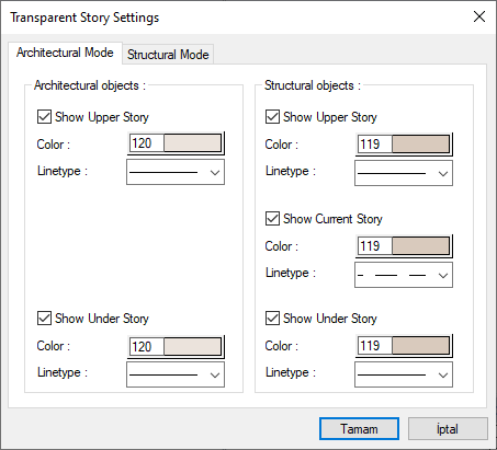 With the settings you will make from the Transparent Story Settings dialog, you can see the objects of the upper and lower stories in virtual lines, and you can easily create your project using virtual lines as a reference.
