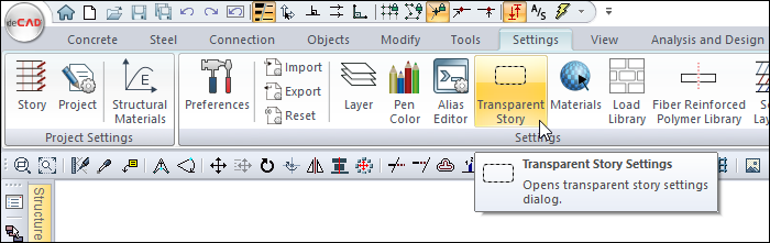 Show under story ![]() When it is in structural mode, it shows the traces of structural objects of a under story if it is marked. | |