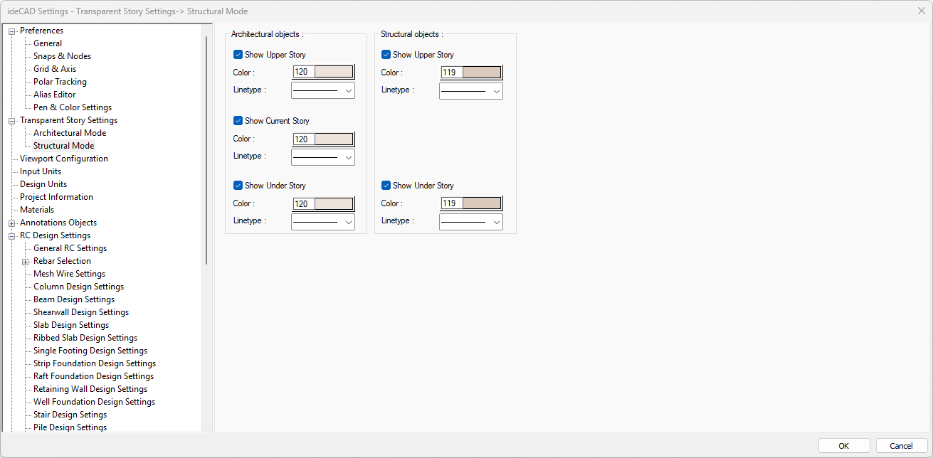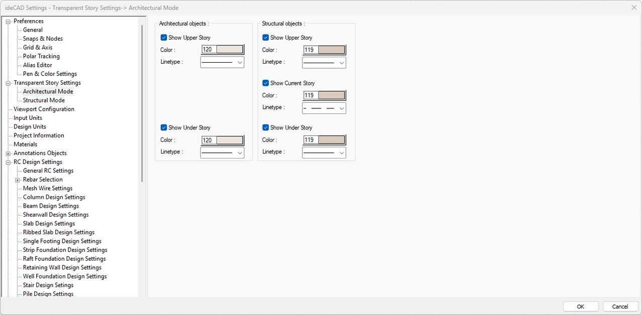 Show current story ![]() In architectural mode, it shows the traces of structural objects of the current story, if it is checked. |