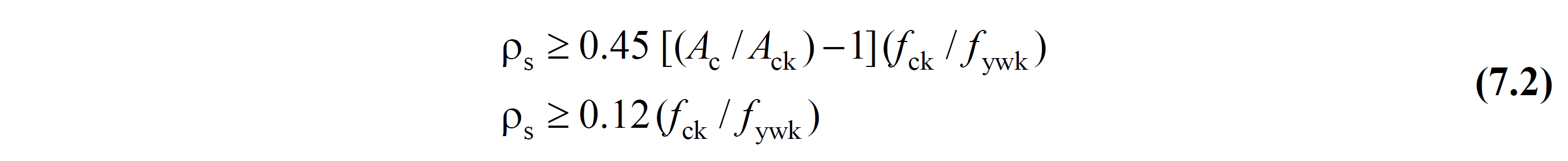 (c) In case of N d > 0.20 A c f ck (pressure ) in circular reinforced columns , the minimum volumetric ratio of the transverse reinforcement in the confinement zones shall be calculated in a way that the conditions in Equation (7.2) are unfavorable.