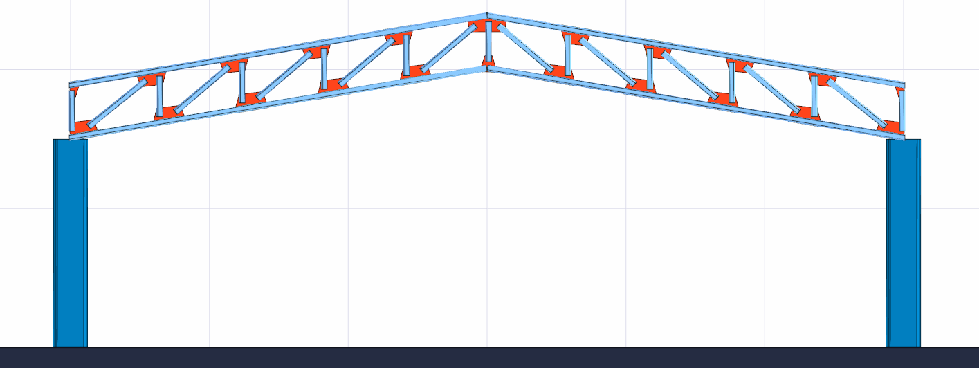 After you have determined the first point of the truss, put the cursor on the second column and create your second point. The program will create trusses.