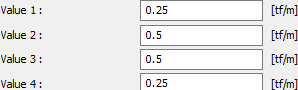 Value 1 , Value 2, Value 3, Value 4, (V1, V2, V3, V4) ![]() Enter the value of the load in the working unit. If you are looking at the properties of the current load, you will see that load value. You can change it according to the situation. |