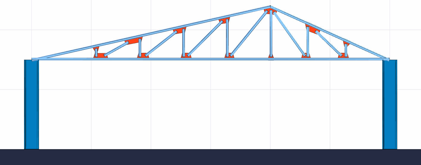 After you have determined the first point of the truss, put the cursor on the second column and create your second point. The program will create trusses.