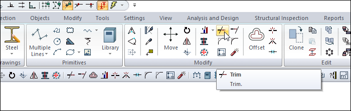 You can access the trim command under the ribbon menu Drawings tab , under the Modify heading.