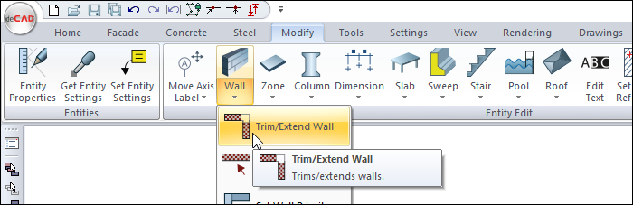 Click the Trim/Extend Wall icon in the ribbon menu .