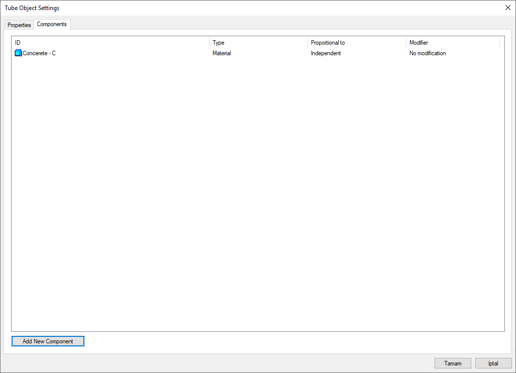 Click the OK button. The "Component Selection" dialog will be closed. A summary line of the material will appear in the Building Components tab. More than one material assignment can be made to an object.