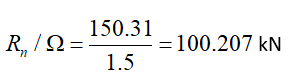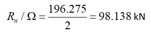 73.288 kN | 74.06 kN | 0.990 | √ |