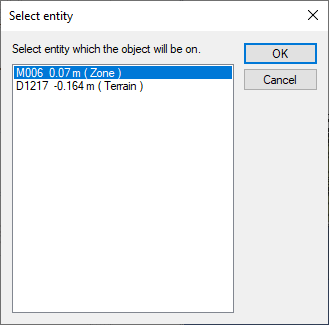 Selecting the object (elevation) on which the object will be placed ![]() |
