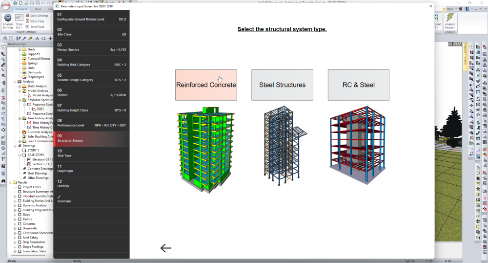 Select Reinforced Concrete as the structural system.