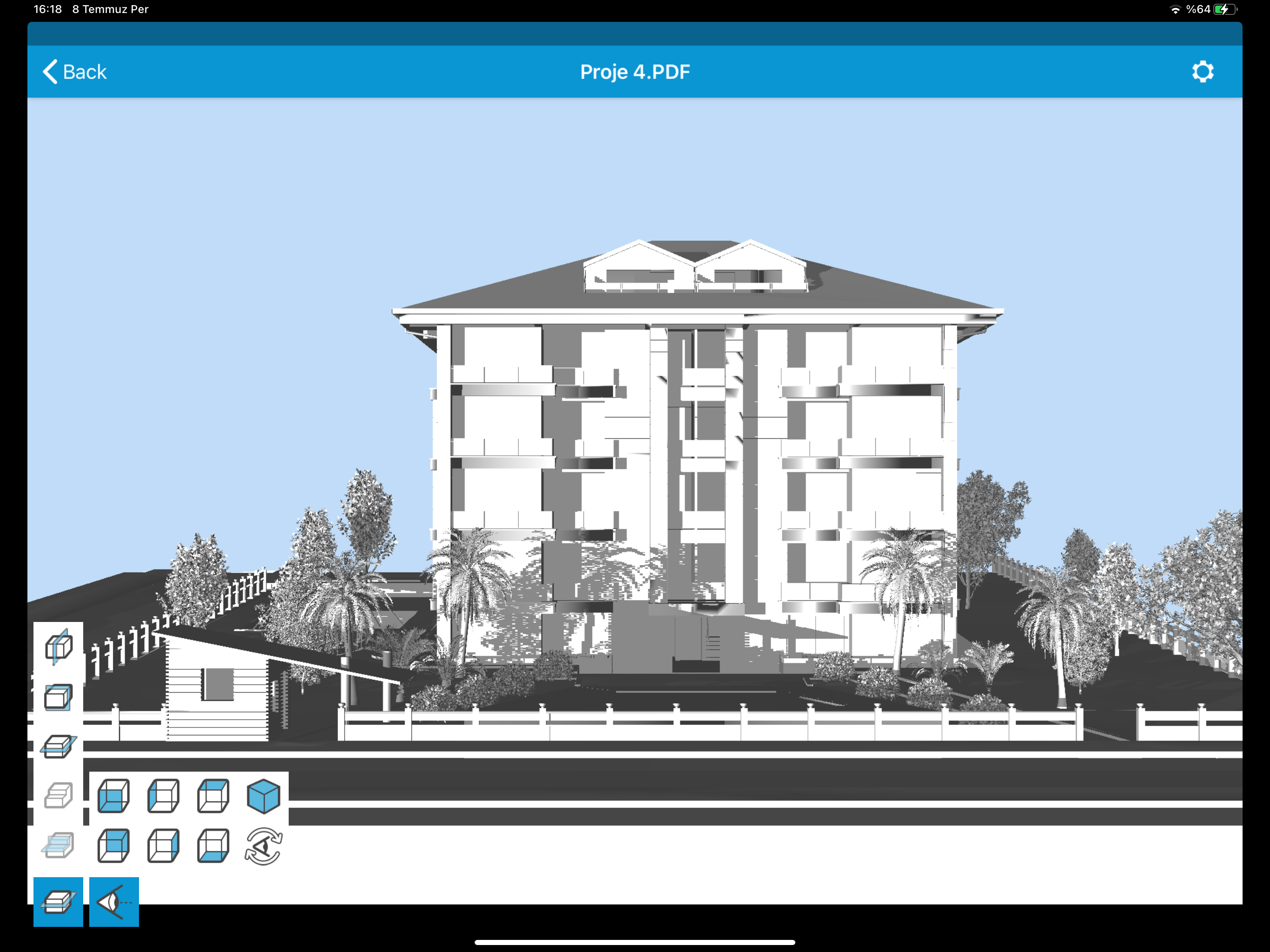 If you want, you can navigate through your project by taking horizontal or vertical sections by touching the icon in the lower left corner and examine your project.
