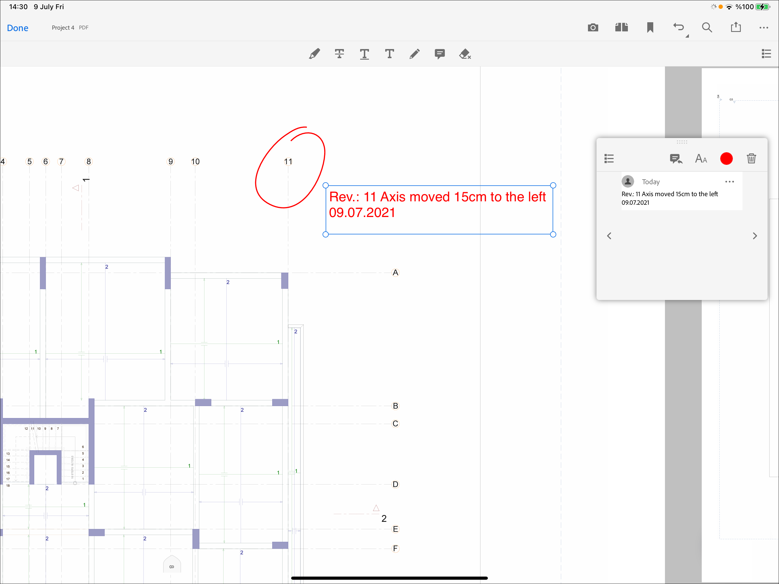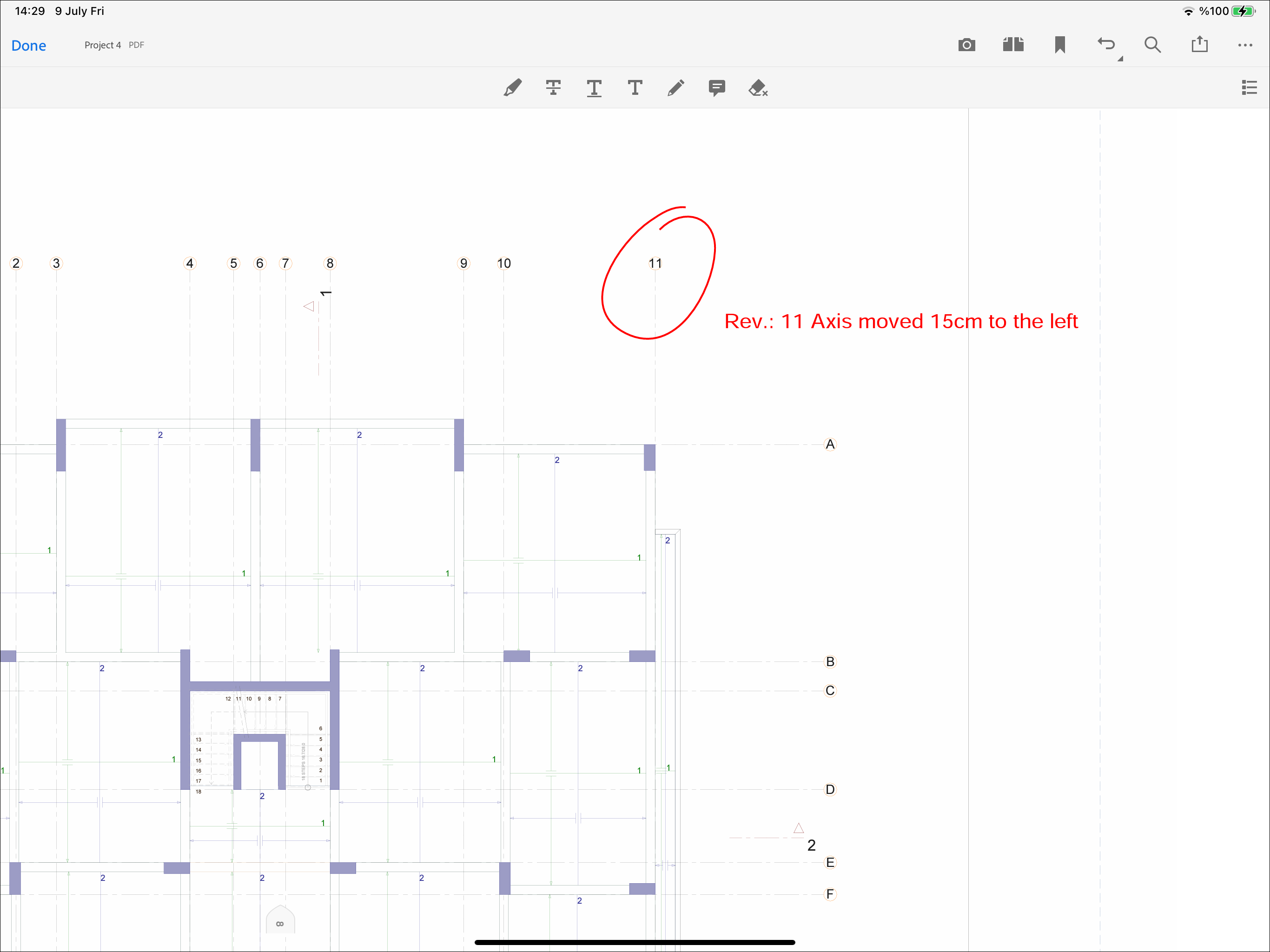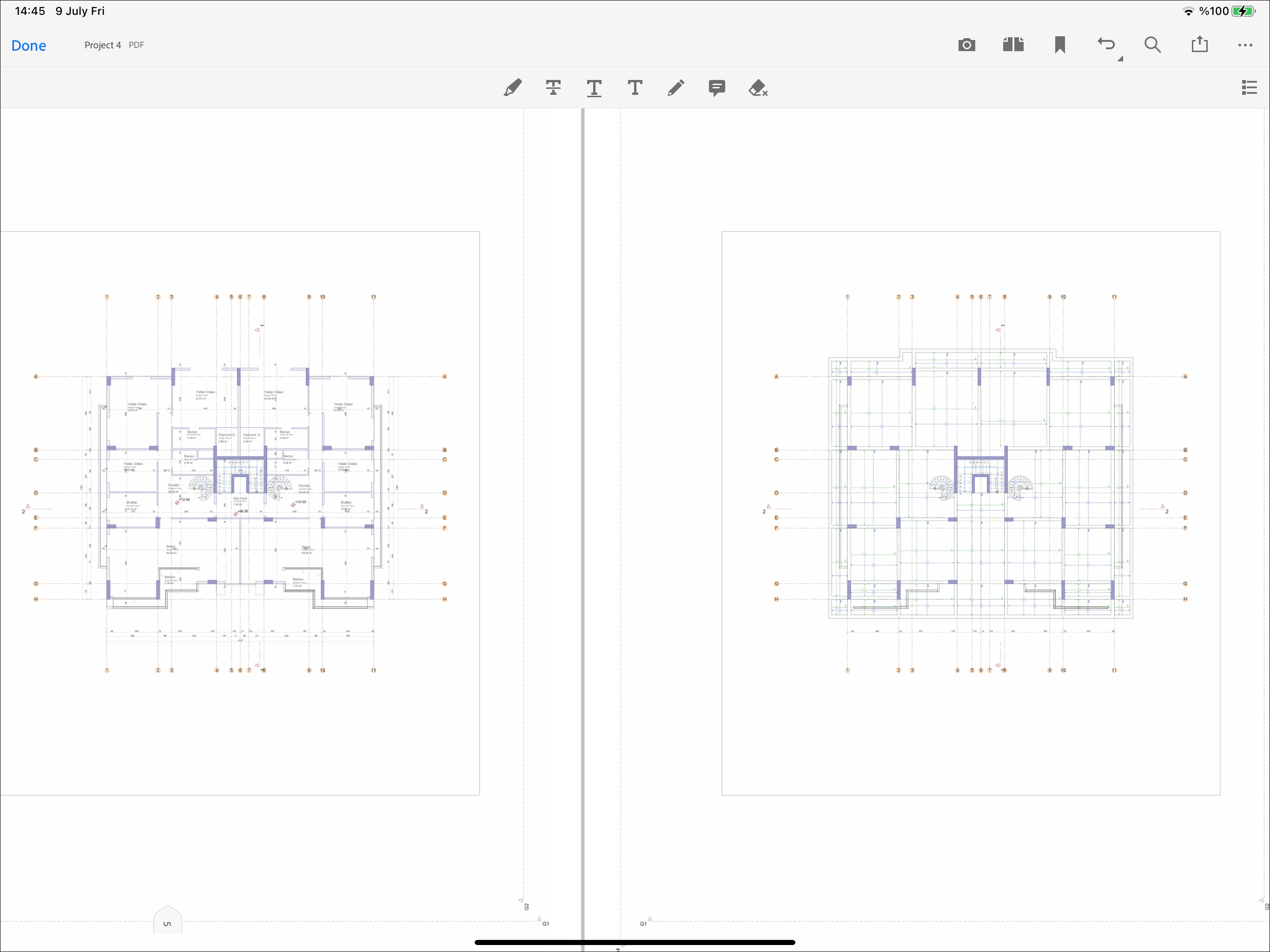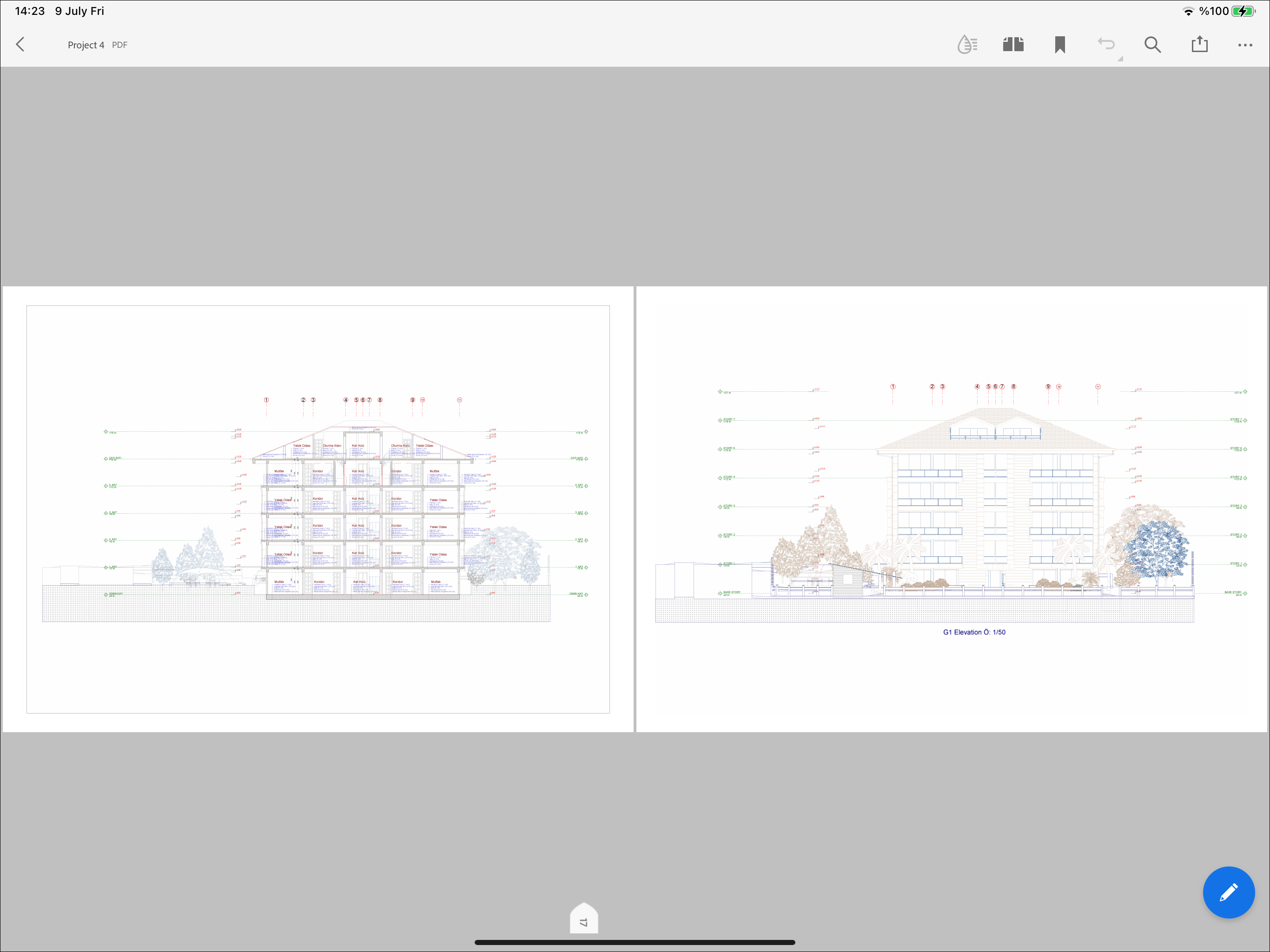 By touching the bookmarks sign, you can reach the list of drawings in the pdf file, and you can switch to the drawing you want from this list.