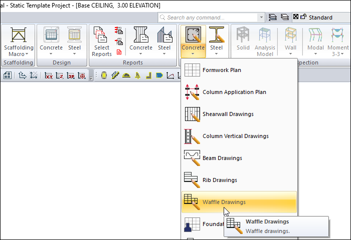 With the Waffle Drawings command, the waffle drawings of the project are created.
