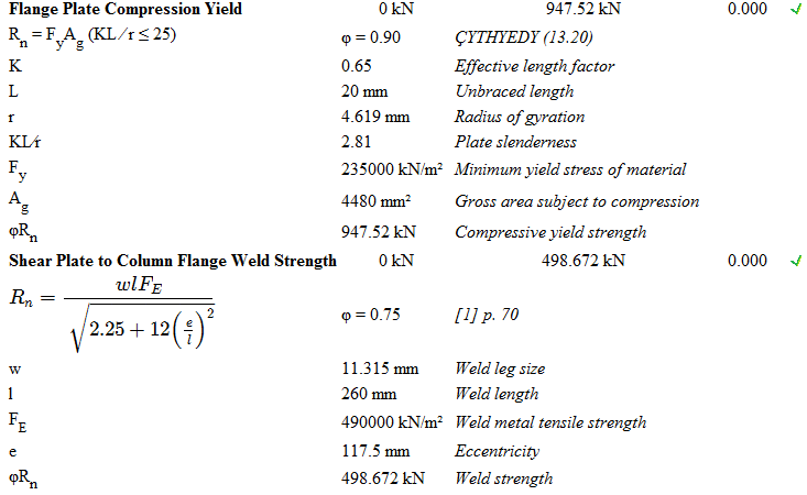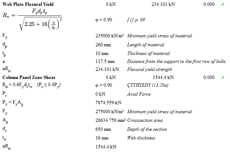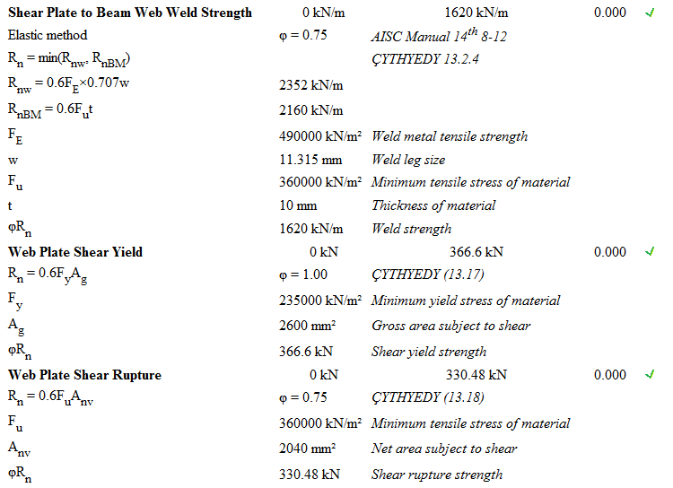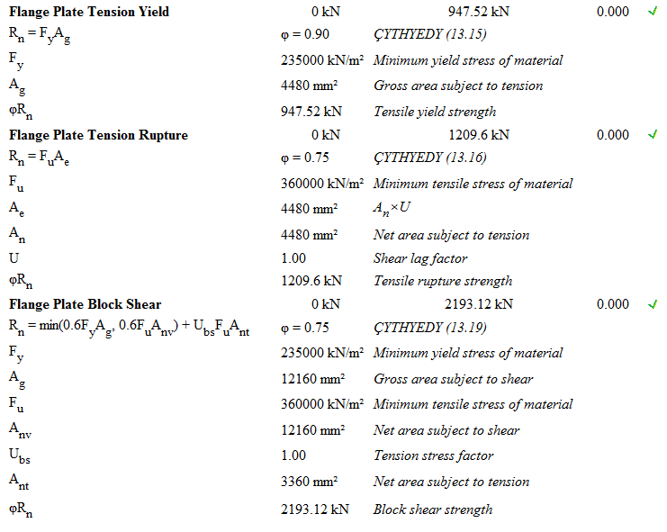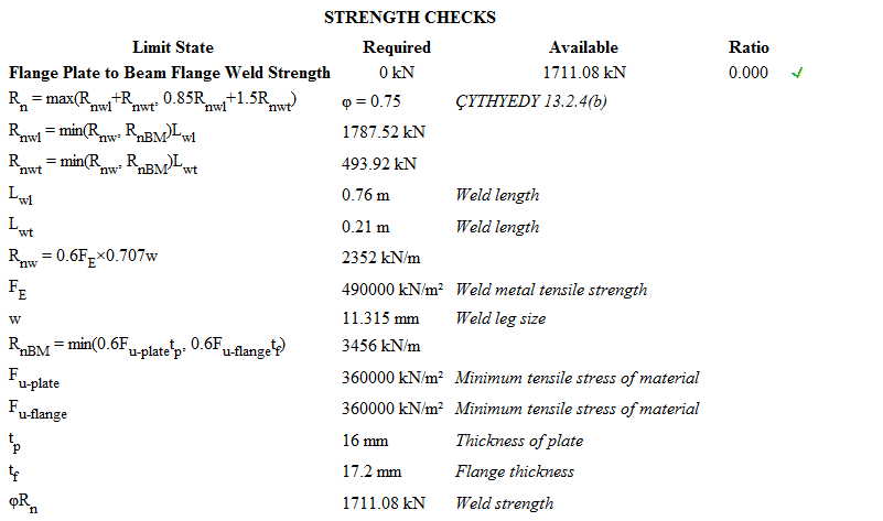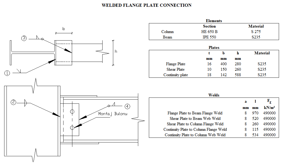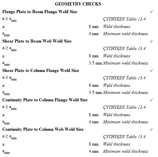 Conditions for Welded Flange Plate moment-transmitting connections are checked as specified in DBYBHY 2007 Annex 4A. This type of connection is not included in TBDY 2018.