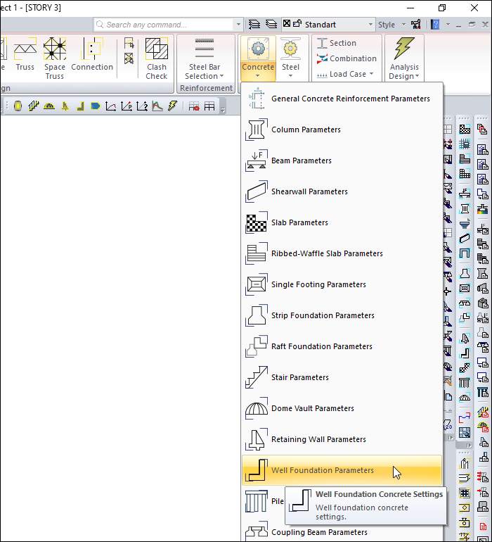 Ribbon menu Analysis and Design tab Design Parameters title under well foundation parameters by clicking on the command Well Foundation Parameters can be found in the dialogue.