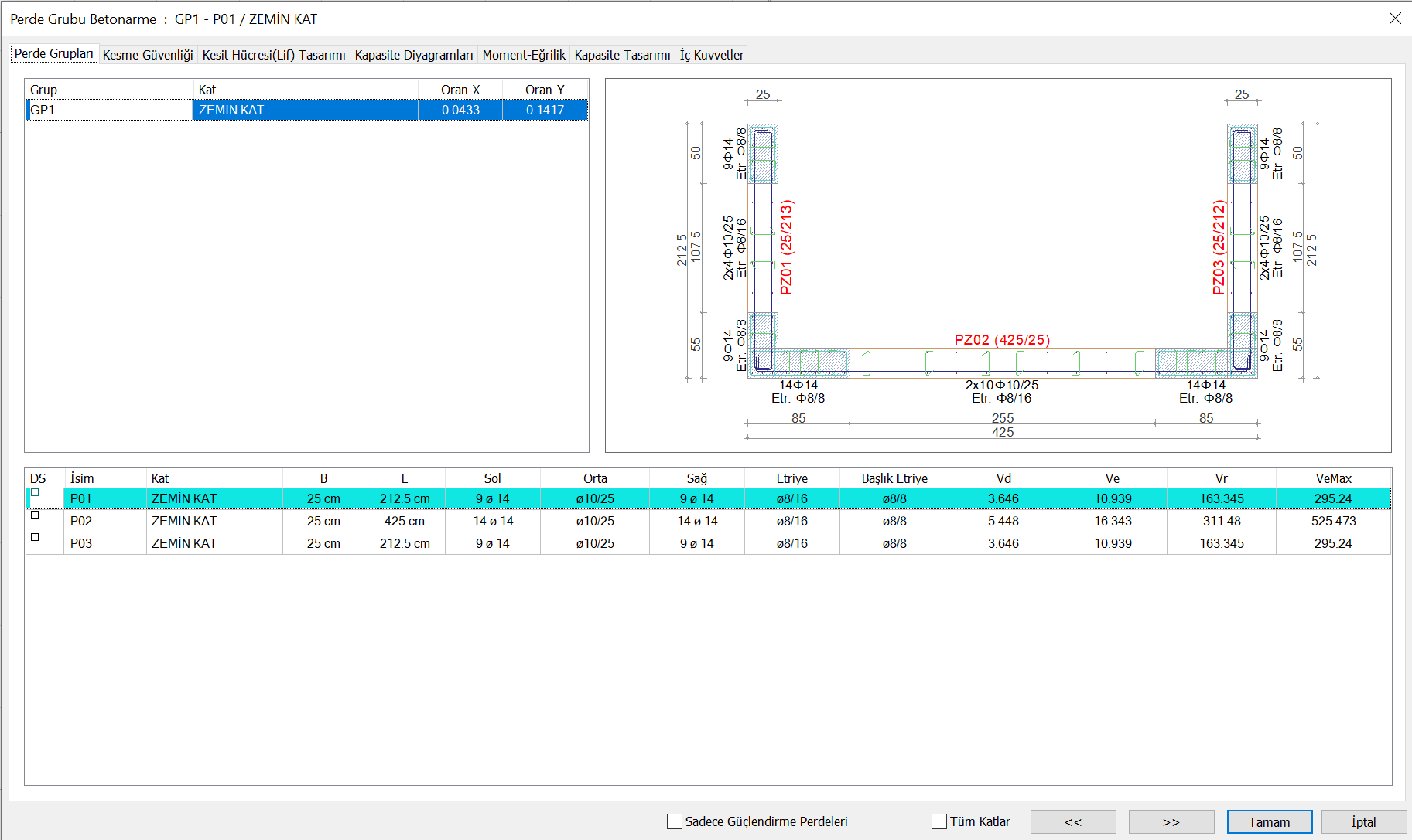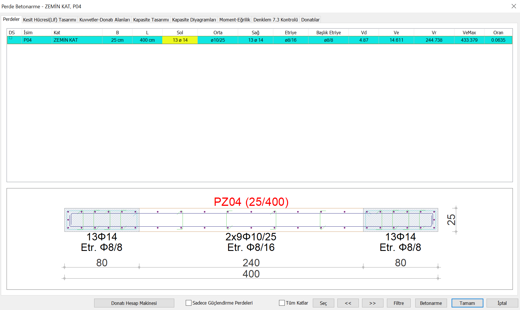 Ve Max : It is the maximum shear strength that the curtain can take, calculated according to TBDY Equation 7.18 .